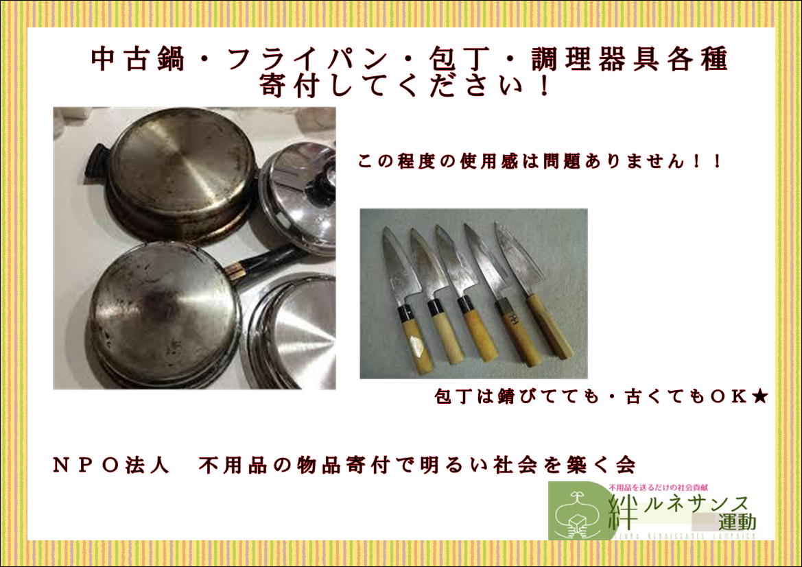 中古調理器具 寄付してください